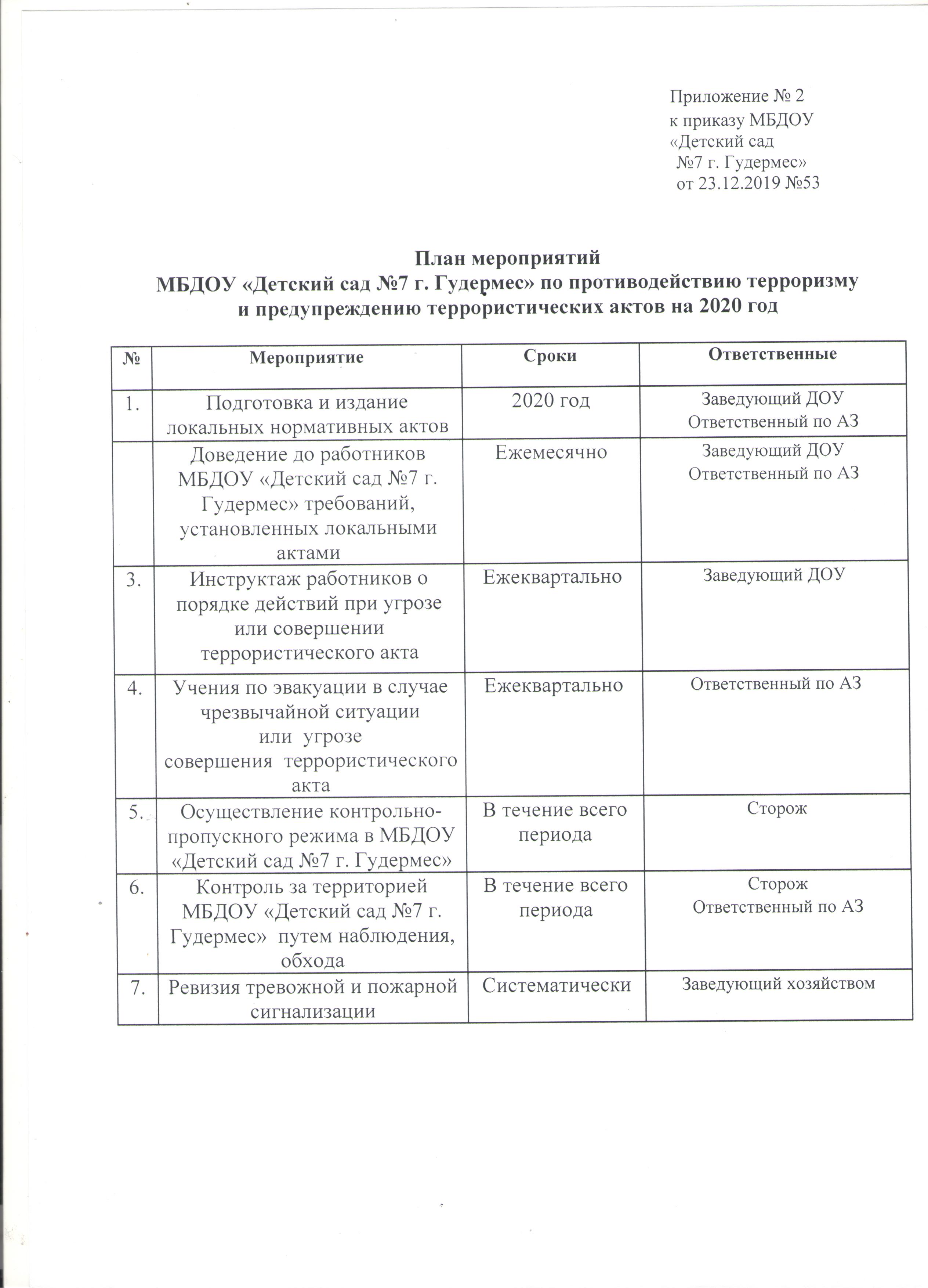 Приказ Об организации режима антитеррористиской безопасности на 2020 год