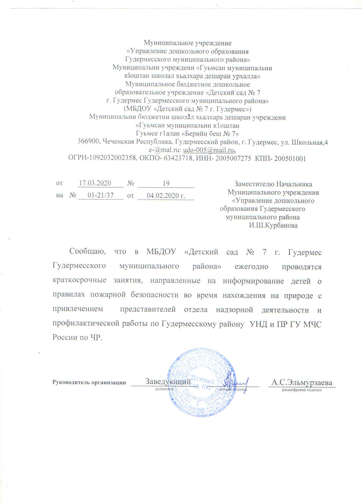 Муниципальное бюджетное дошкольное образовательное учреждение «Детский сад № 7 г. Гудермес Гудермесского муниципального района»