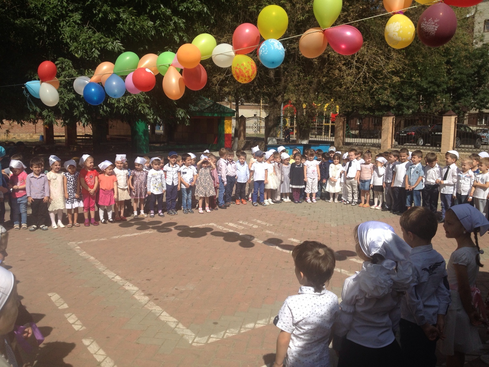 День знаний – это важный праздник. Ведь знания нужны всем. Чтобы много знать, надо учиться. В этот день школьники идут в школу, а малыши в детский сад. Об этом и говорили воспитатели на тематическом занятии. Малыши рассказывали чему их учат в детском саду: говорить, считать,рисовать,петь и танцевать. Через год,два,когда они узнают побольше,они тоже пойдут в школу, а потом в институт,а потом будут работать – кто кем хочет. Провели мероприятие День знаний. Дети старшей группы «А» читали стихи, разгадывали загадки, пели песни, танцевали. Воспитанники старшей группы «Б» под руководством воспитателя А.С. Ахмадовой присутствовали на торжественной линейке в СОШ №3, были в гостях у первоклассников. Им очень понравилась школа. Заведующий ДОУ Эльмурзаева А.С. поблагодарила воспитателей и музыкального руководителя за хорошую организацию и проведение мероприятий, посвященных Дню знаний.