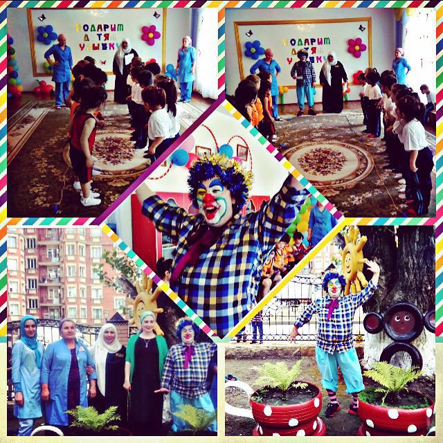 В красочно оформленном зале проведен праздник «Подарим детям улыбку». Для ребят были организованы спортивные конкурсы. Дети с большим удовольствием принимали участие в мероприятии, громко аплодировали выступающим. Особенно всем понравился клоун, роль, которого исполнила воспитатель М.Г. Осмаева. Вместе с клоуном малыши играли, пели и танцевали. Праздник прошел в дружеской теплой атмосфере. Победителей и побежденных не оказалось, победила дружба.