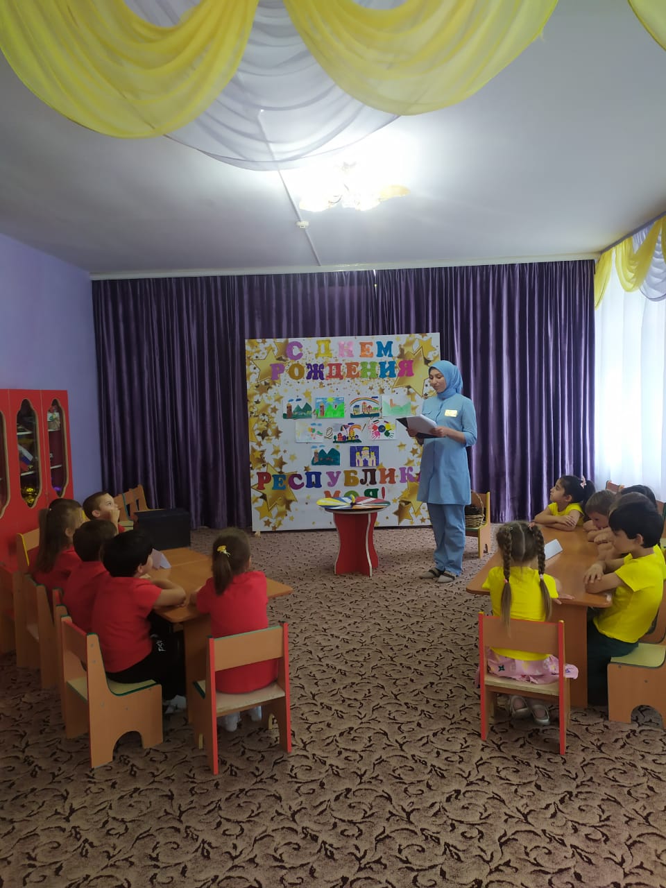 3.09.2021г. Во всех возрастных группах проведены тематические занятия, посвященные Дню Чеченской Республики. Воспитатели знакомили детей с историей возникновения и традициями праздника и важности этой праздничной даты для Чеченской Республики. Здесь ребята узнали, что этот праздник еще называется и Днем гражданского согласия, единения и примирения, поскольку способствует единению народов республики, укреплению гражданского согласия, установлению межнационального мира между ними. Дети ознакомились с главными символами Чеченской Республики – с гербом, флагом и гимном. Узнали многое о тех преобразованиях, которые происходили в нашей Республике, о славном пути созидания и процветания, которым начала свой путь в новую эру, во главе с Первым Президентом Чеченской Республики, Героем России Ахмат-Хаджи Кадыровым (Дала г1азот къобал дойла цуьнан!), которому мы следуем в настоящем.