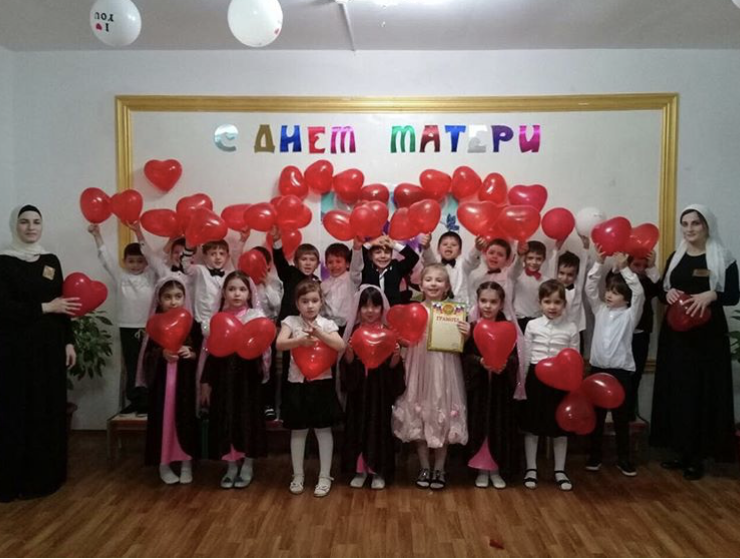 23.11.2018г. Во всех возрастных группах проведены праздничные мероприятия. В программе праздничного мероприятия подготовительной группы «Райан» были проведены игры, сценки, песни, танцы. Особенно растрогала присутствующих сценка «Вигахь со асара, нана». В группах детского сада были организованы выставки портретов мам. Также дети подарили мамам сувениры, которые сделали своими руками. Всем очень понравилось!