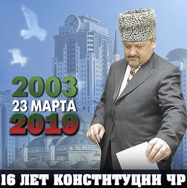 Оформлен фасада здания баннером, посвященным Дню конституции Чеченской Республики