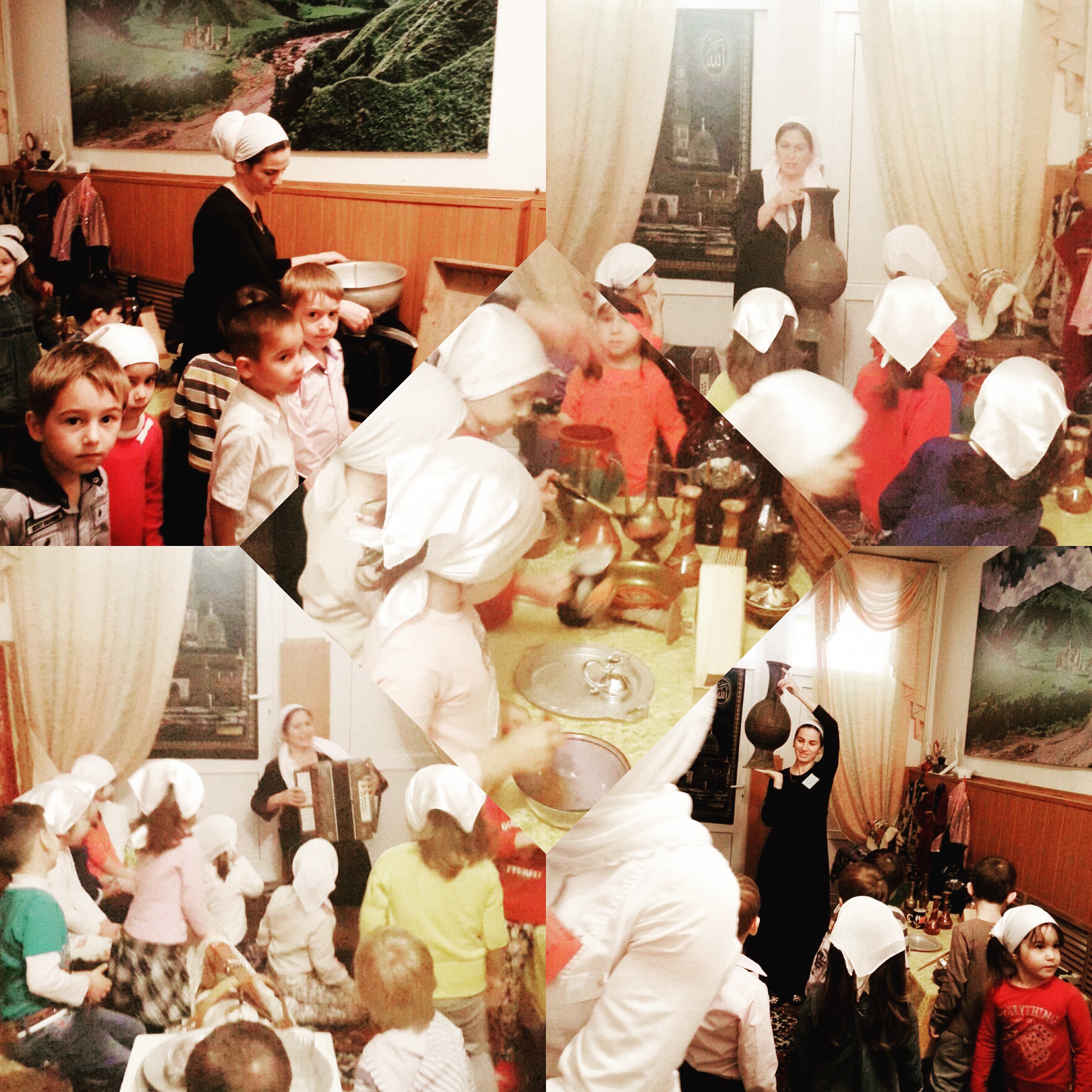 С этой целью, создан музей «Национальная изба». Воспитатели знакомят детей с историей быта чеченского народа. В музее выставлены старинные предметы домашнего обихода и национальные костюмы. Воспитатели рассказывают, как нелегко жилось нашим предкам, как пользовались керосиновой лампой, старинным утюгом. Как трудно было без электричества